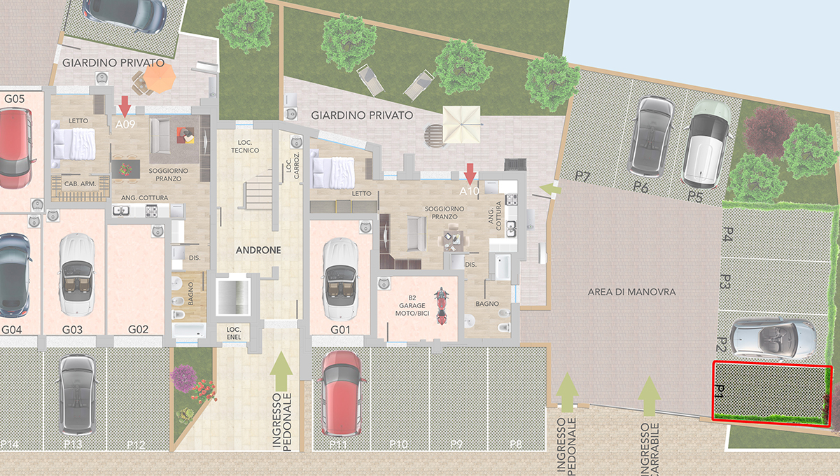 Posto auto p1 coperto di mq 12,00 all’interno dell’edificio Residenze Factory in via Aremogna