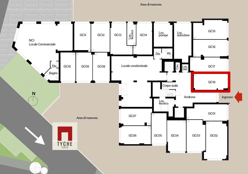Garage GC18 all’interno dell’edificio Tyche Tower